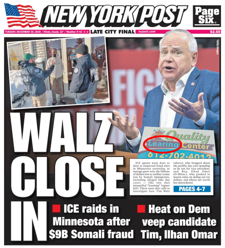 Federal fraud investigation in Minnesota sparks backlash in Seattle’s Somali community. It’s amazing that a 23-year-old journalist, a YouTuber who’s now got over 80 million views on this thing, found more in a matter of hours than Tim Walz and Keith Ellison, the Attorney General, have found in 7 years. Look at it this way: If Brainless Barack hadn’t’ve let ’em in, they wouldn’t’ve been here to break our laws, or steal our tax dollars, and become indignant about it when they were exposed.