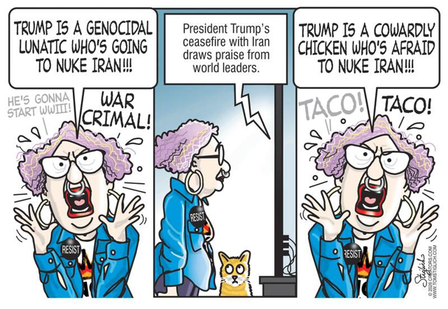 Trump calls Iran ceasefire a ‘big day for world peace,’ threatens 50% tariff on allies. While I’m hesitant to overstate the obvious, I would be remiss if I didn’t point out that #45/47’s idea of imposing a 50% tariff on our allies only makes common sense. While two out of the three major goals are to deny Iran a nuclear bomb and squash their ability to supply money and arms to the Houthis, Hezbollah, and Hamas, ensuring the unimpeded transit of the world’s oil supply through the Straits of Hormuz is the final major objective. Even though none of our oil supply is dependent on that route, that is not the case for our NATO allies. When asked to provide naval escorts for oil-bearing cargo ships passing through the Straits, apparently, they all refused. And once again, the US is shouldering the lion’s share of costs. It’s only fair that we recoup what will be a minuscule amount compared to what we’ve paid to neutralize the world’s biggest exporter of terror. NATO’s tryin’ to have their cake and eat it too.